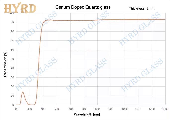 Doped with a little cerium into high purity fused silica glass, the material absorbs all ultraviolet, while has high transmission in visible wavelength. It is a key optical glass material in lasers.